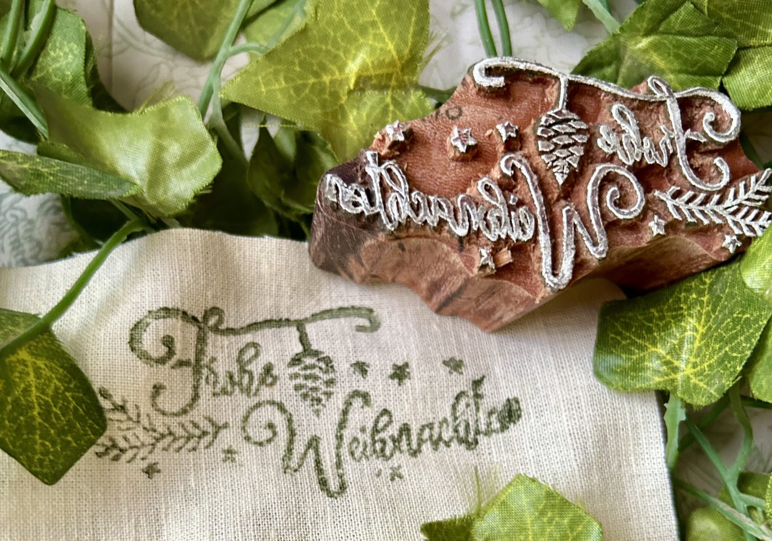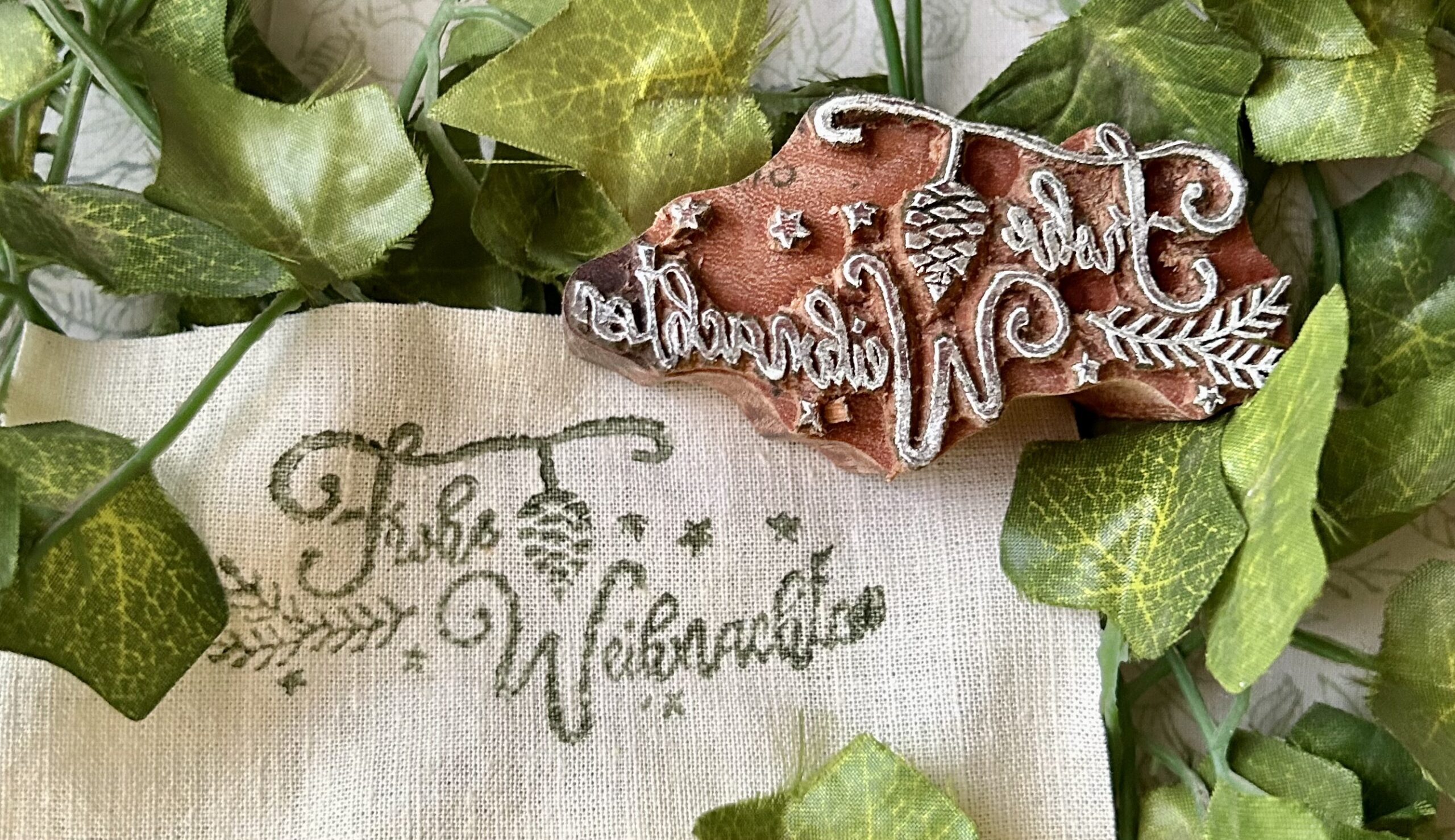 Mit diesem handgeschnitzten Frohe Weihnachten – Stempel kannst du in Handumdrehen deine eigenen festlichen Grüße gestalten. Perfekt für Weihnachtskarten, Geschenkspapier, Anhänger oder selbstbedruckte Stoffe – so wird jedes Geschenk zu etwas ganz Besonderem. Jeder Stempel ist ein Unikat – mit Sorgfalt aus Holz geschnitzt, nachhaltig gefertigt und für viele kreative Projekte geeignet.