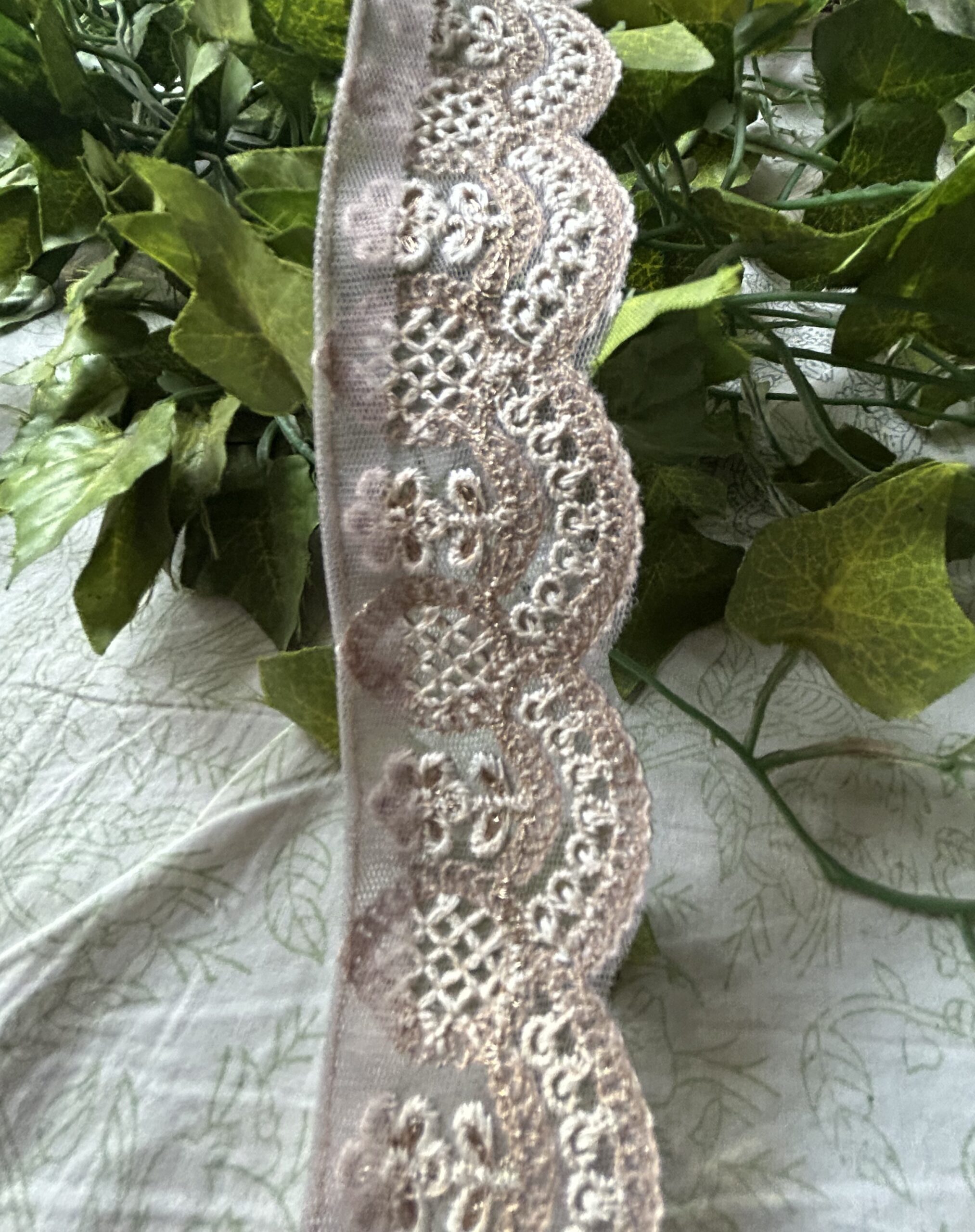 Diese elegante Stoffbordüre „Vintage Rosa Spitzbogen“ begeistert mit einem zarten, romantischen Design im klassischen Spitzbogen-Stil. Die feinen, geschwungenen Formen erinnern an Vintage-Spitze und verleihen jedem Projekt eine stilvolle, feminine Note.