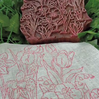 Stoffdruck Stempel “ Narzissen und Tulpen Frühling“ – handgeschnitzter Holzstempel für florale Frühlingsmotive & kreative DIY-Projekte